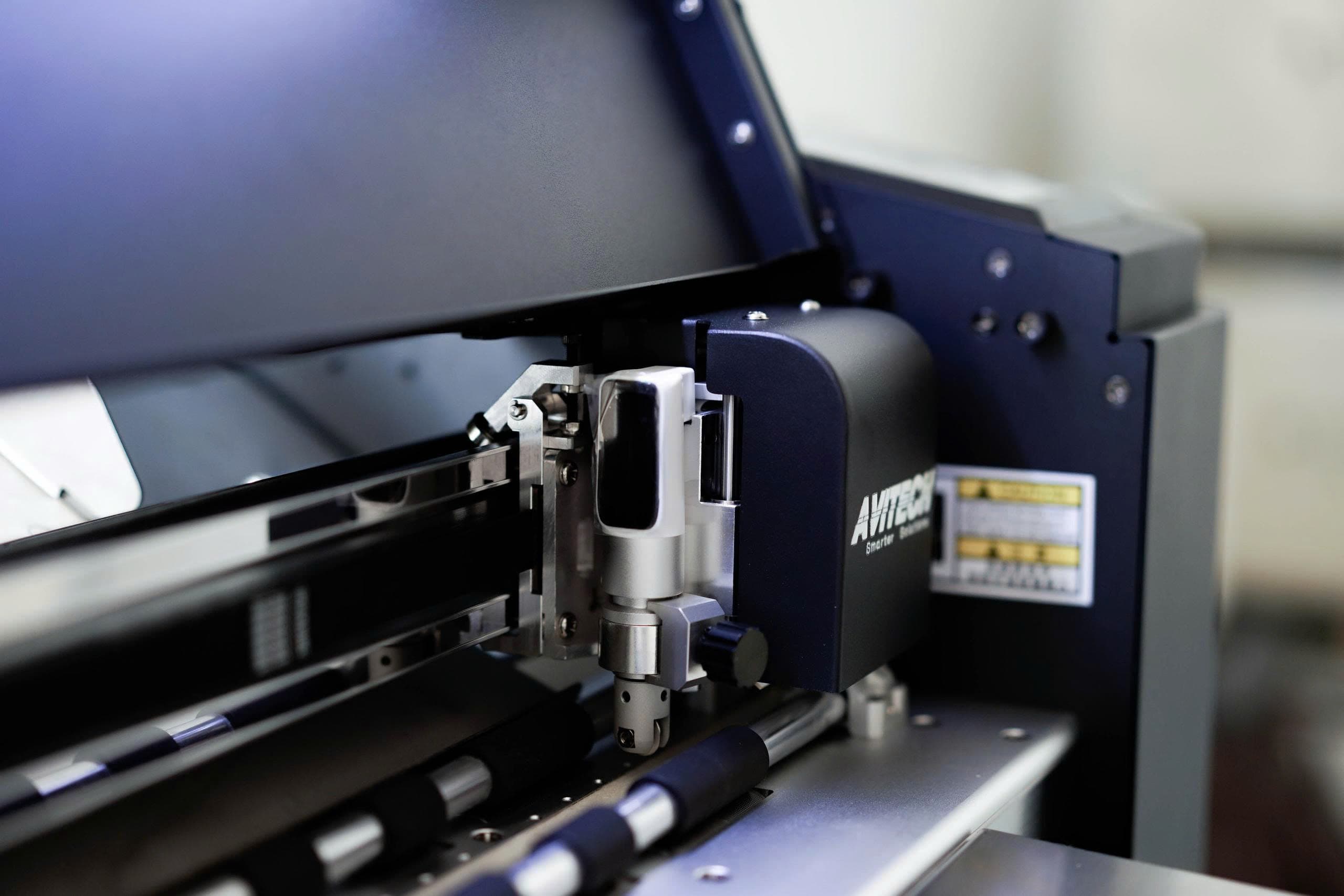 Máy bế kỹ thuật số Avitech A370 PLUS với sự nâng cấp cụm mô-tơ cắt, cấn to hơn ; mạnh mẽ hơn tạo đường cấn (rãnh gấp) sâu và đẹp hơn so với A370 Ultra.