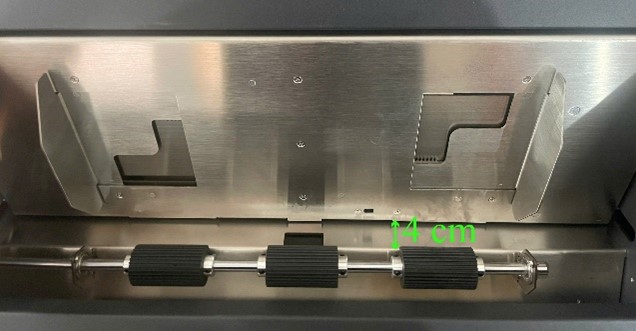 Hỗ trợ khổ giấy tối đa rộng 37 cmchiều cao chồng giấy lên đến 4 cm, tương đương khoảng 120 tờ giấy C300 hoặc 140 tờ decal nhựa.
