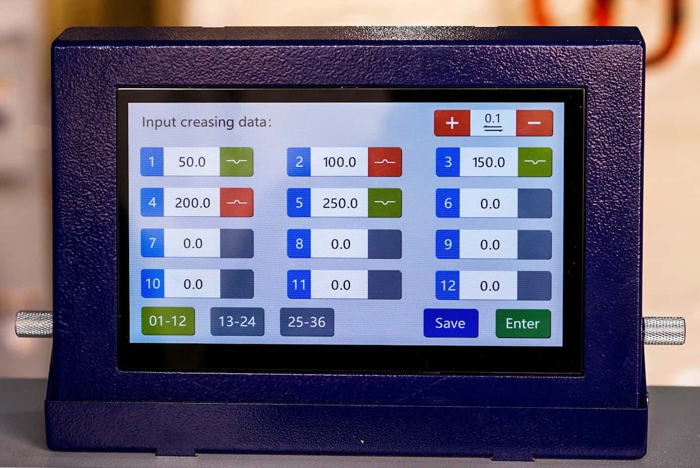 Máy hỗ trợ lập trình tự động, giúp định vị chính xác vị trí các đường cấn, đồng thời có thể thay đổi linh hoạt các loại dao để thực hiện đa dạng kiểu cấn, từ cấn gân đến cấn răng cưa. Người dùng cũng có thể tùy chỉnh độ sâu và độ nghiêng của đường cấn theo nhu cầu.