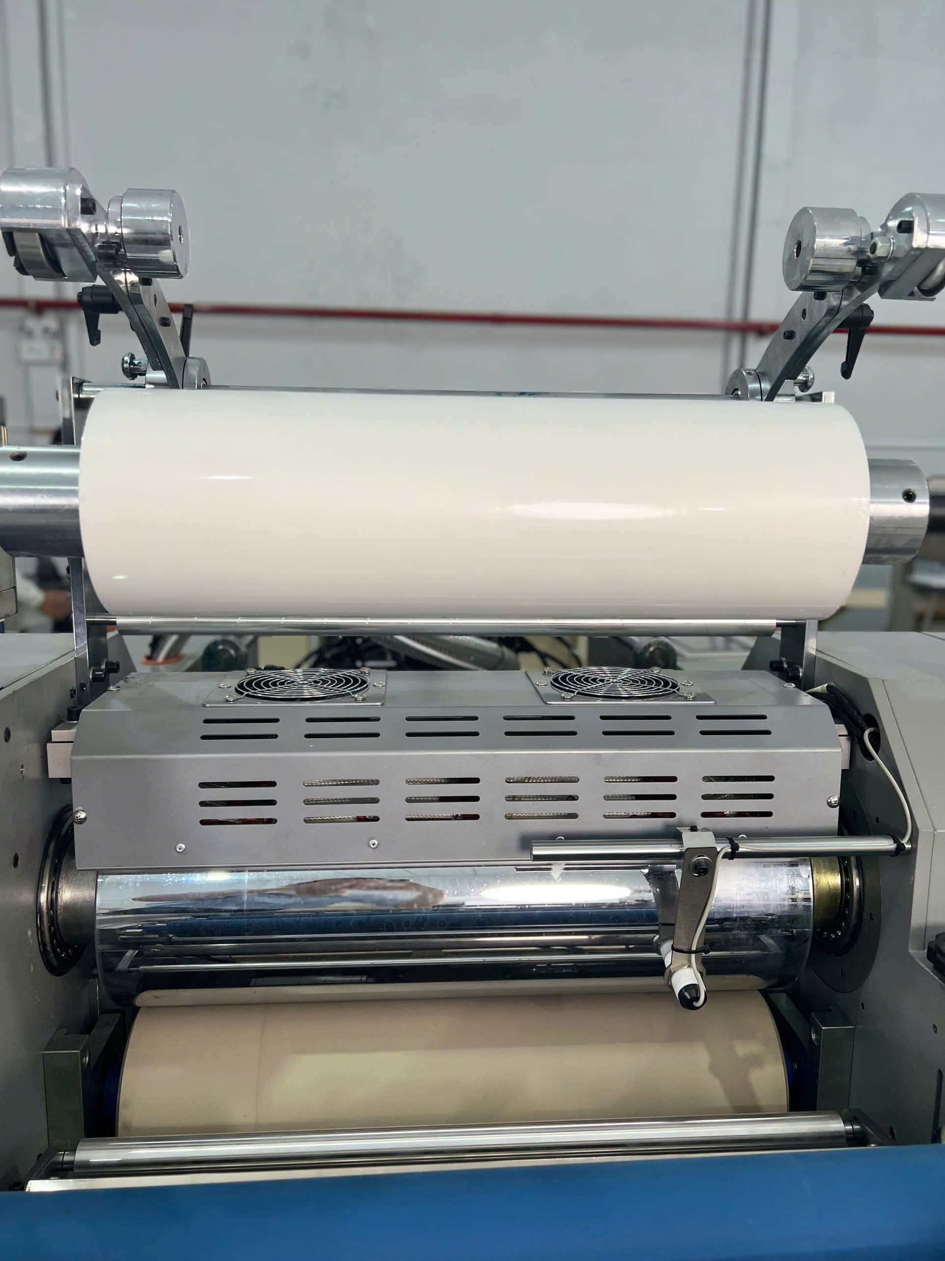 Cụm lô gia nhiệt (Lô cán): Lô mạ crom đường kính lớn 20 cm, tích hợp công nghệ gia nhiệt điện từ hiện đại, gia nhiệt siêu nhanh – giữ nhiệt ổn định. Nhiệt phân bổ đồng đều giúp màng bám chắc tuyệt đối, thành phẩm bóng đẹp, phẳng mịn, không bong tróc. Đặc biệt hiệu quả với bài in nền màu đậm và full màu, phù hợp gia công cao cấp. |