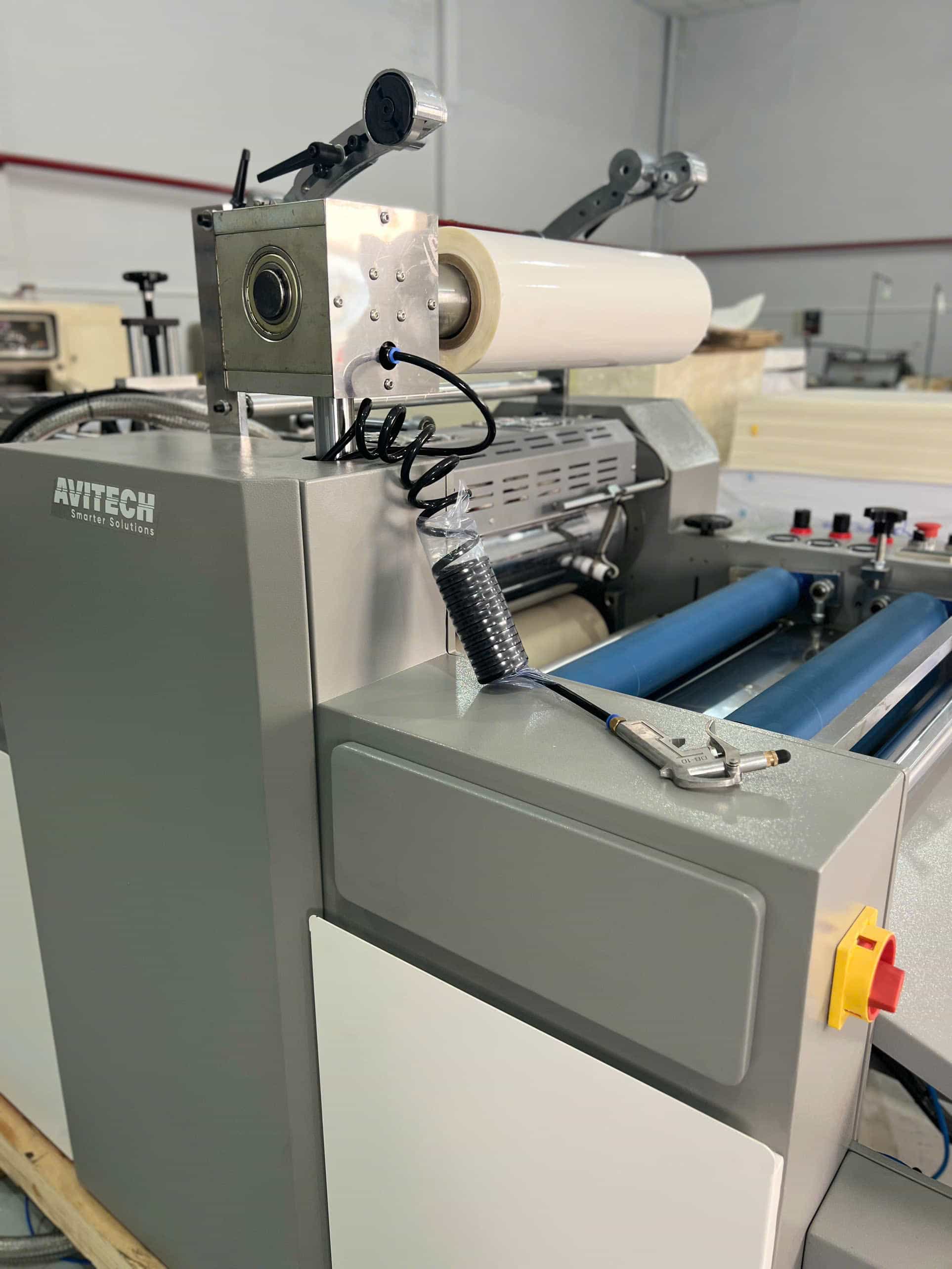 Máy cán màng nhiệt công nghiệp tự động AVSA-560 là dòng máy cán màng công nghiệp cao cấp, thiết kế cho nhu cầu gia công ổn định và hiệu suất cao. Máy nổi bật với lô mạ crom Ø200 mm tích hợp gia nhiệt điện từ, cho khả năng gia nhiệt siêu nhanh, ổn định, nhiệt phân bổ đều giúp màng bám chắc, bề mặt thành phẩm bóng đẹp, không bong tróc.
