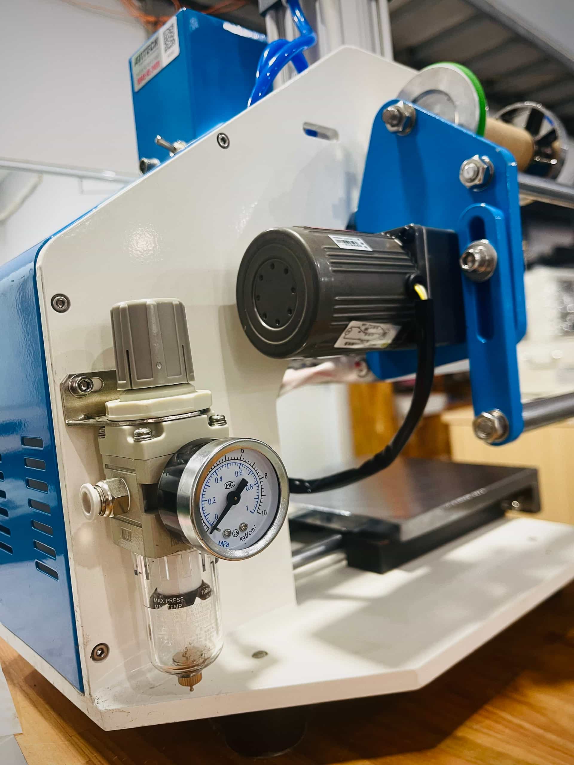 Máy được trang bị đầy đủ các chức năng như: điều chỉnh lực ép, nhiệt độ mâm ép, thời gian ép và bước chạy nhũ.