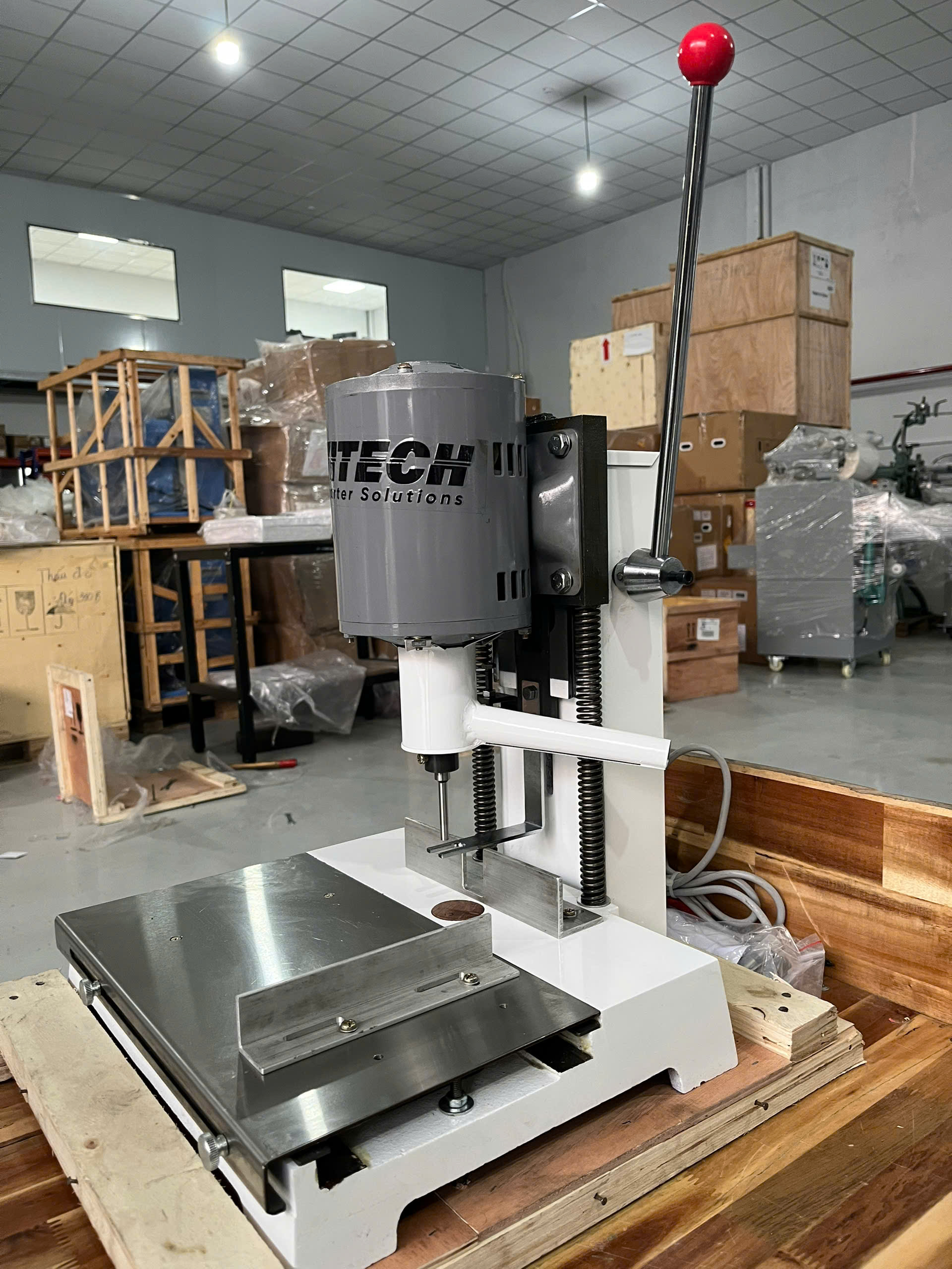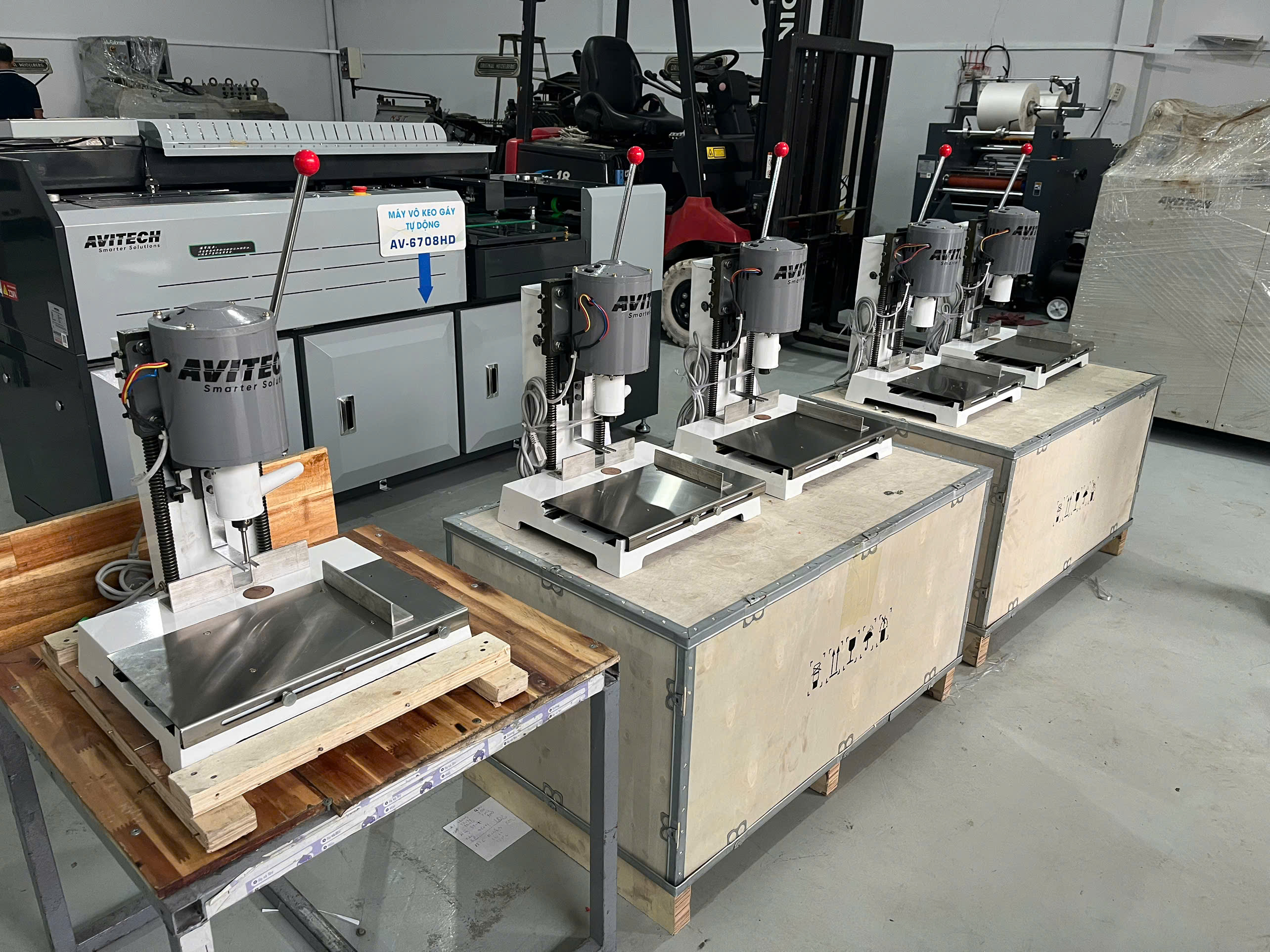 Đóng gói bằng thùng gỗ ép, bảo vệ máy tốt khi vận chuyển.