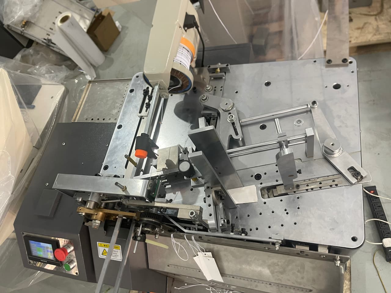 Xỏ dây thẻ tag tự động: xỏ dây qua lỗ thẻ và siết dây đúng vị trí, chắc chắn và đồng đều trên từng sản phẩm.